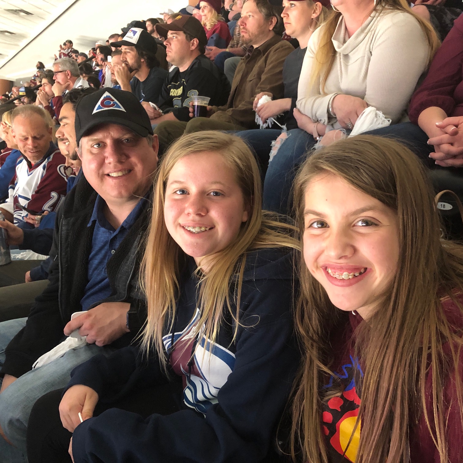 We jumped at the chance to attend an Avalanche playoff game. It was a first for the girls and me. The only seats available by the time we got around to buying ours were WAAAAY up in the rafters. We didn’t care though – we were just happy to be there for the action!