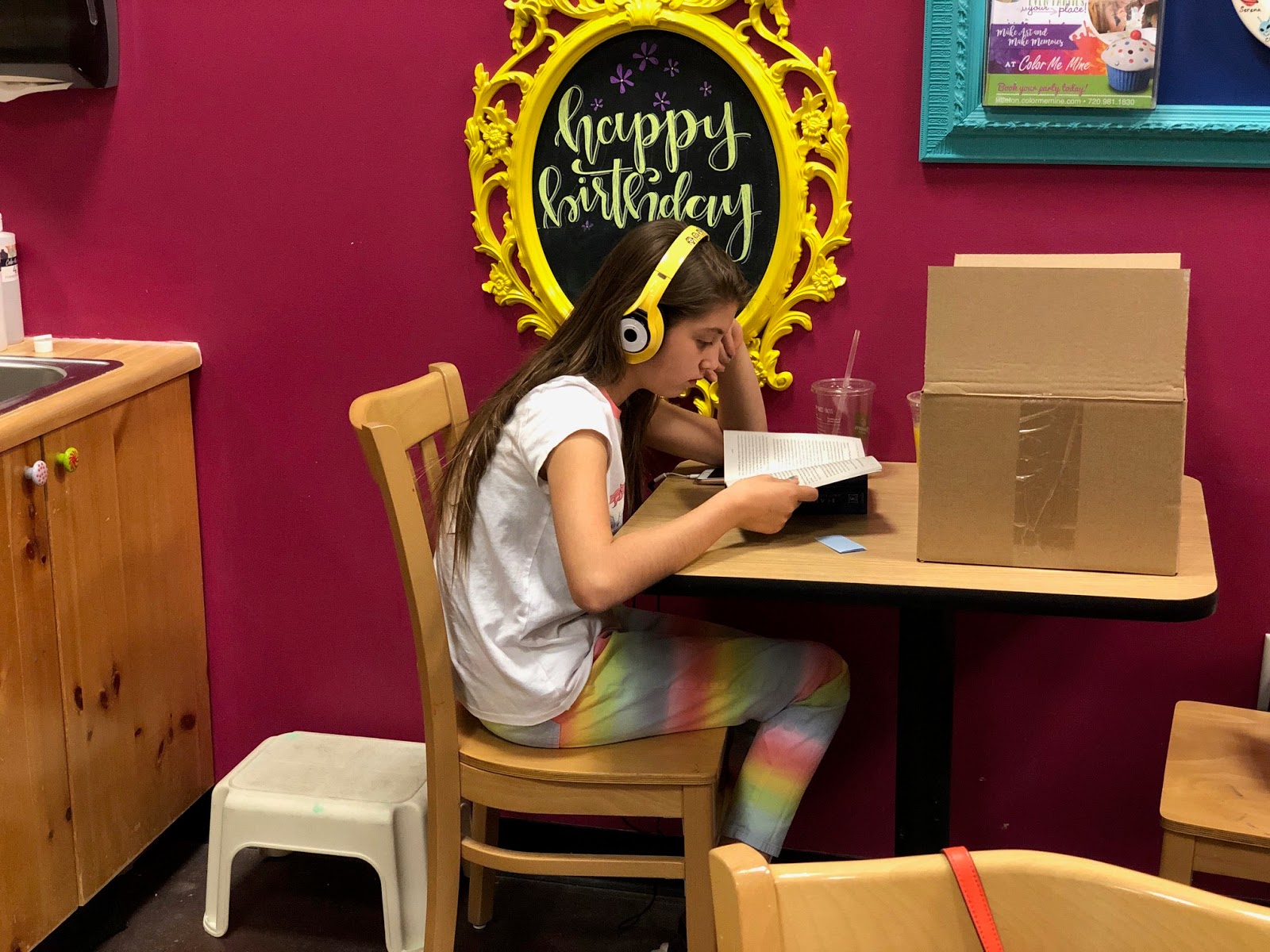 Annabelle chose to go to the kitchen with B and Gwyneth joined me at the Aurora studio. I tried to talk Annabelle into coming with us, but she loves the kitchen and is an amazing help to her dad.