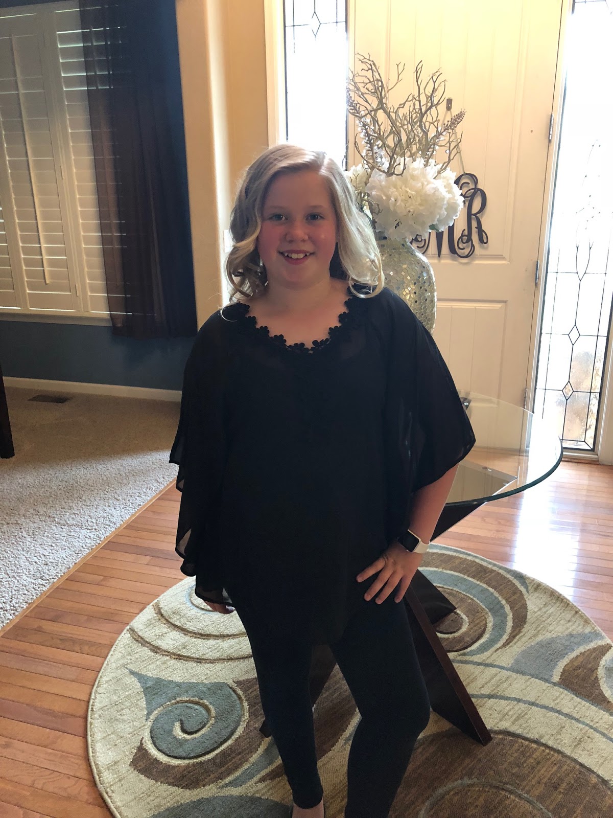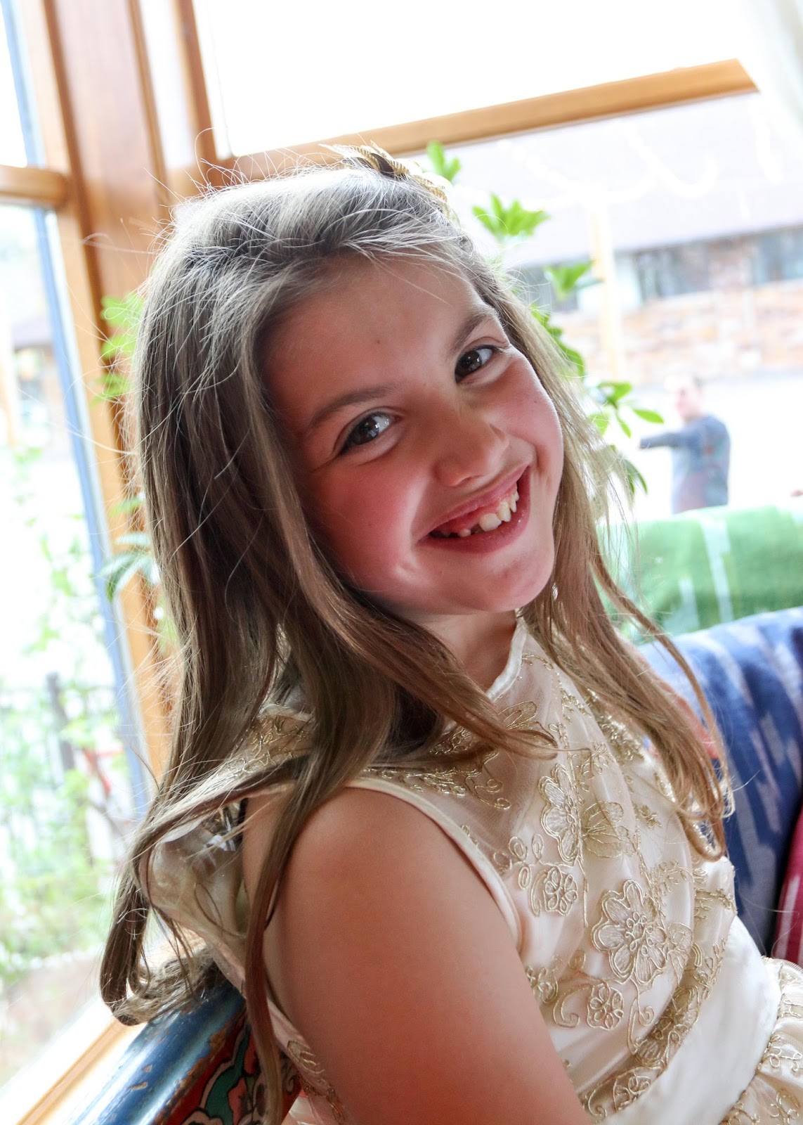 Before setting off Annabelle asked me to give her some “beachy waves” in her hair. It was my first attempt with a new curling gadget we purchased. It took a few tries and there’s room for improvement, but I thought she looked fabulous! Very beachy indeed! She was full of confidence with that head full of curls.