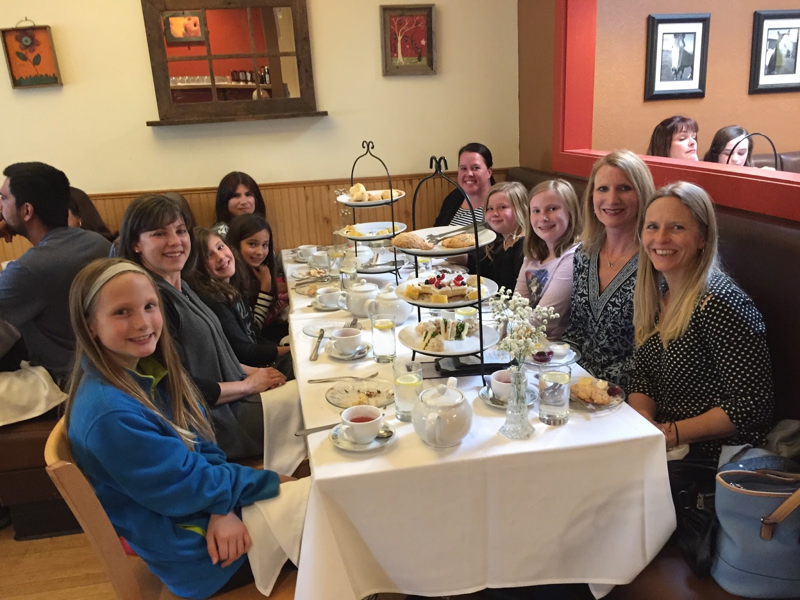 Annabelle and I had a special afternoon planned with her girl scout troop. We attended a mother daughter tea party at the Huckleberry. They do a simple and casual afternoon tea with tasty tea cakes, scones, and sandwiches.