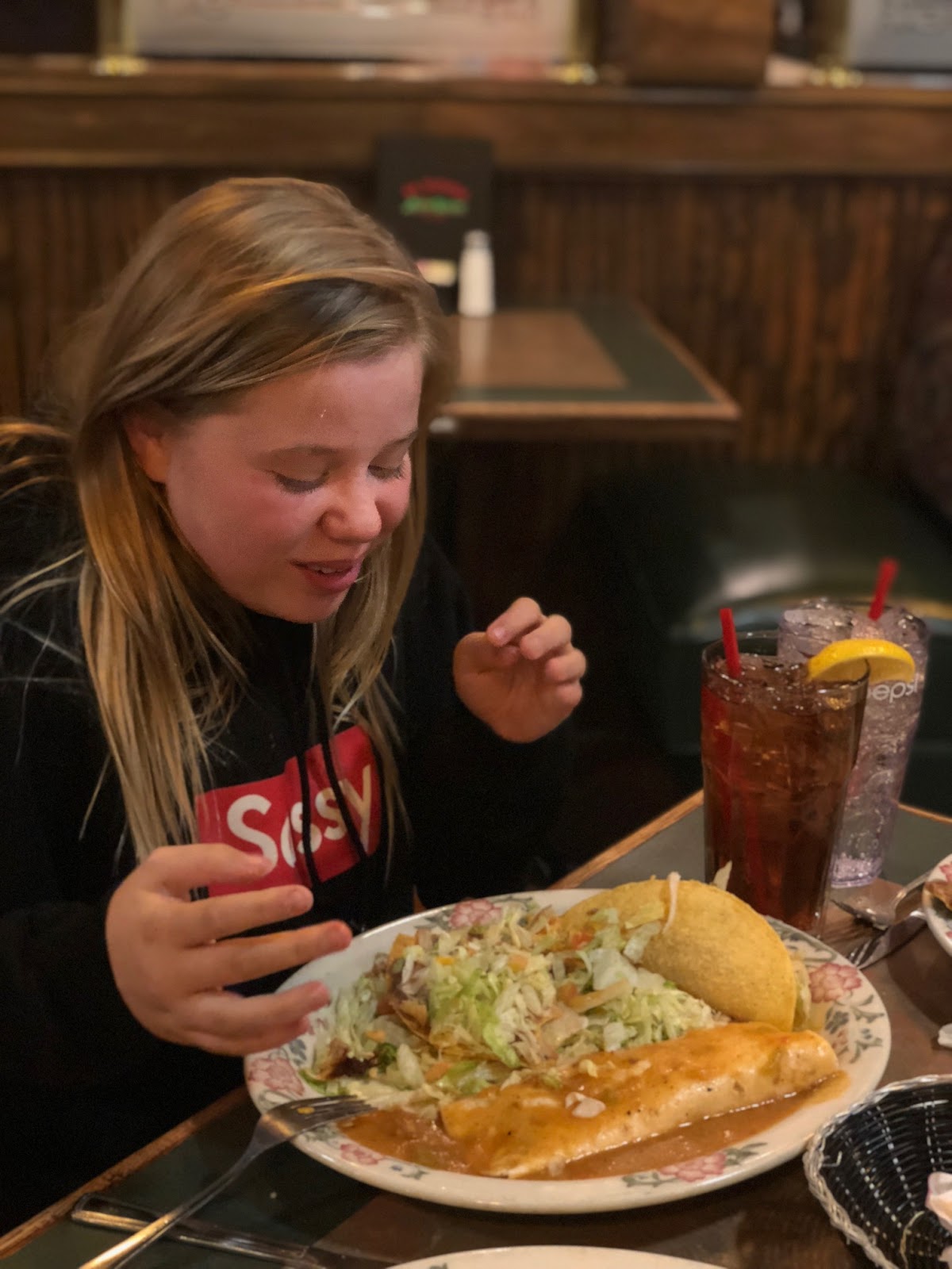B opted out of the movie to get some work done, but met up with us for lunch afterwards. We enjoyed PF Changs which is right next door to the theater. It’s Gwyneth’s favorite and Annabelle tolerates it. Annabelle doesn’t really love asian food, which is kind of a bummer because it’s a fam favorite for the rest of us.